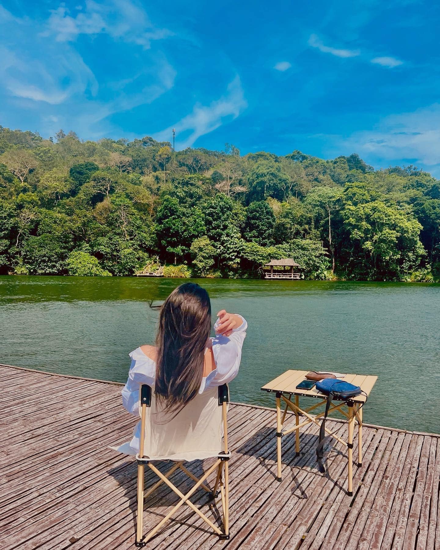 - Ăn uống xong xuôi bọn mình nghỉ ngơi, đợi trời mát là lại tiếp tục di chuyển. Ra khu cho thuê thuyền kayak và xe đạp trên nước. Khu này cũng có 1 bể bơi siêu siêu đẹp mà ít người checkin cực nhé. Đạp xe, chơi thuyền chán bọn mình lại lên bể bơi tắm 🤣