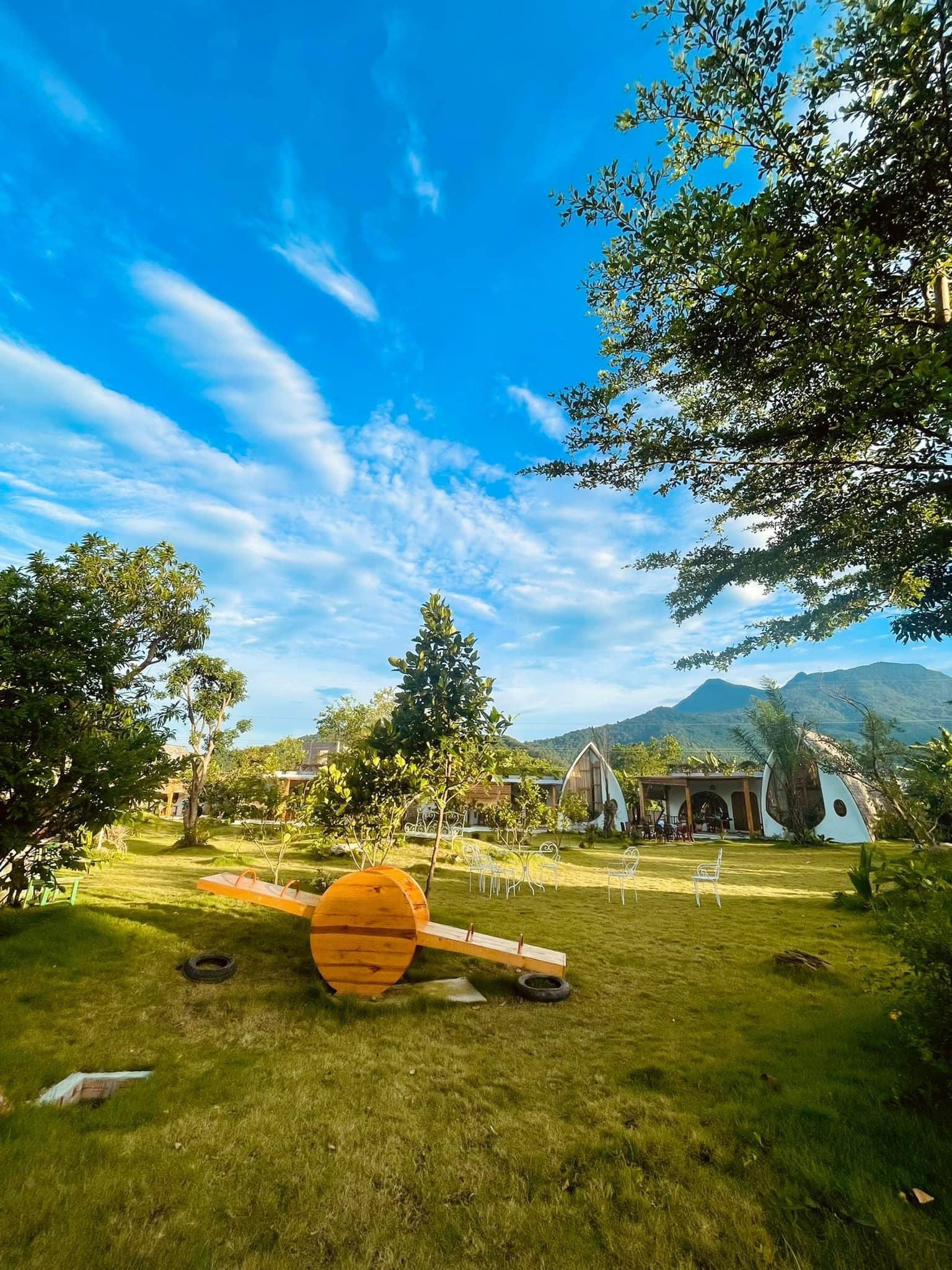 - Chơi tới tầm 12h kém bọn mình tiếp tực di chuyển sang khu cắm trại. Ở đây có đầy đủ combo cho thuê bếp, bàn ghế, lều trại luôn. Vào khuôn viên bọn tớ tự chọn chỗ rồi set up bàn ghế, còn các chị nhân viên sẽ dựng lều giúp.