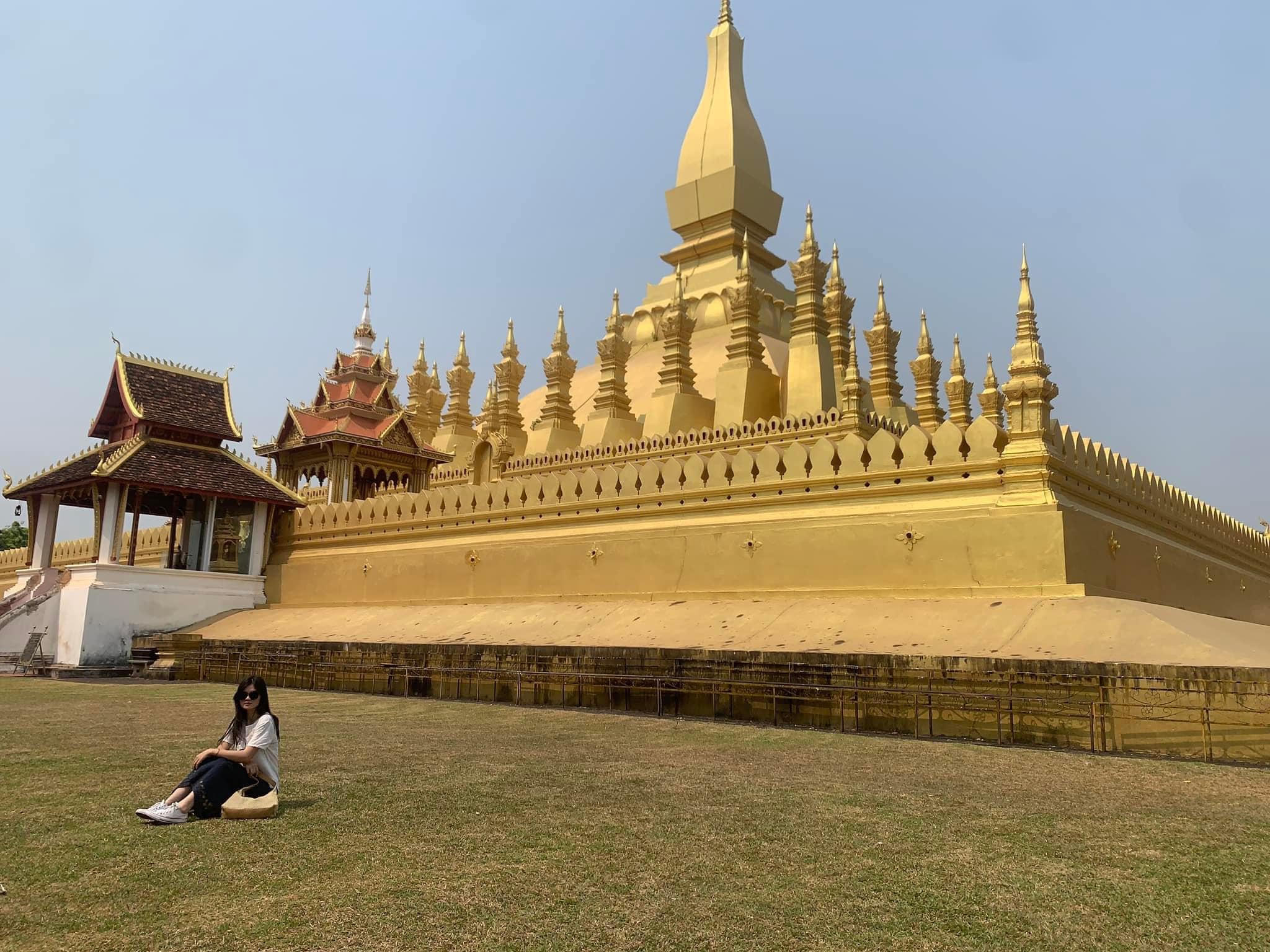 - Khải hoàn môn Patuxai: Đây là công trình được xây dựng để vinh danh những chiến sĩ trong cuộc kháng chiến chống Pháp của nhân dân Lào. Mình ghé Patuxay 2 lần: ban đêm và ban ngày. Về đêm, Patuxay mang vẻ đẹp lung linh, tráng lệ. Khi ánh mặt trời lên lại phản chiếu xuống mặt hồ nước lung linh. Dù nắng nóng nhưng mình vẫn thấy Patuxay đẹp, mình đã ngồi ở ghế đá khá lâu, ngắm nhìn những hình thù nước độc đáo tạo nên từ đài phun và nghe tiếng nhạc Lào vui tươi phát ra từ cơ quan nào đó bên cạnh.