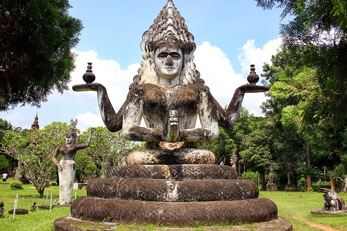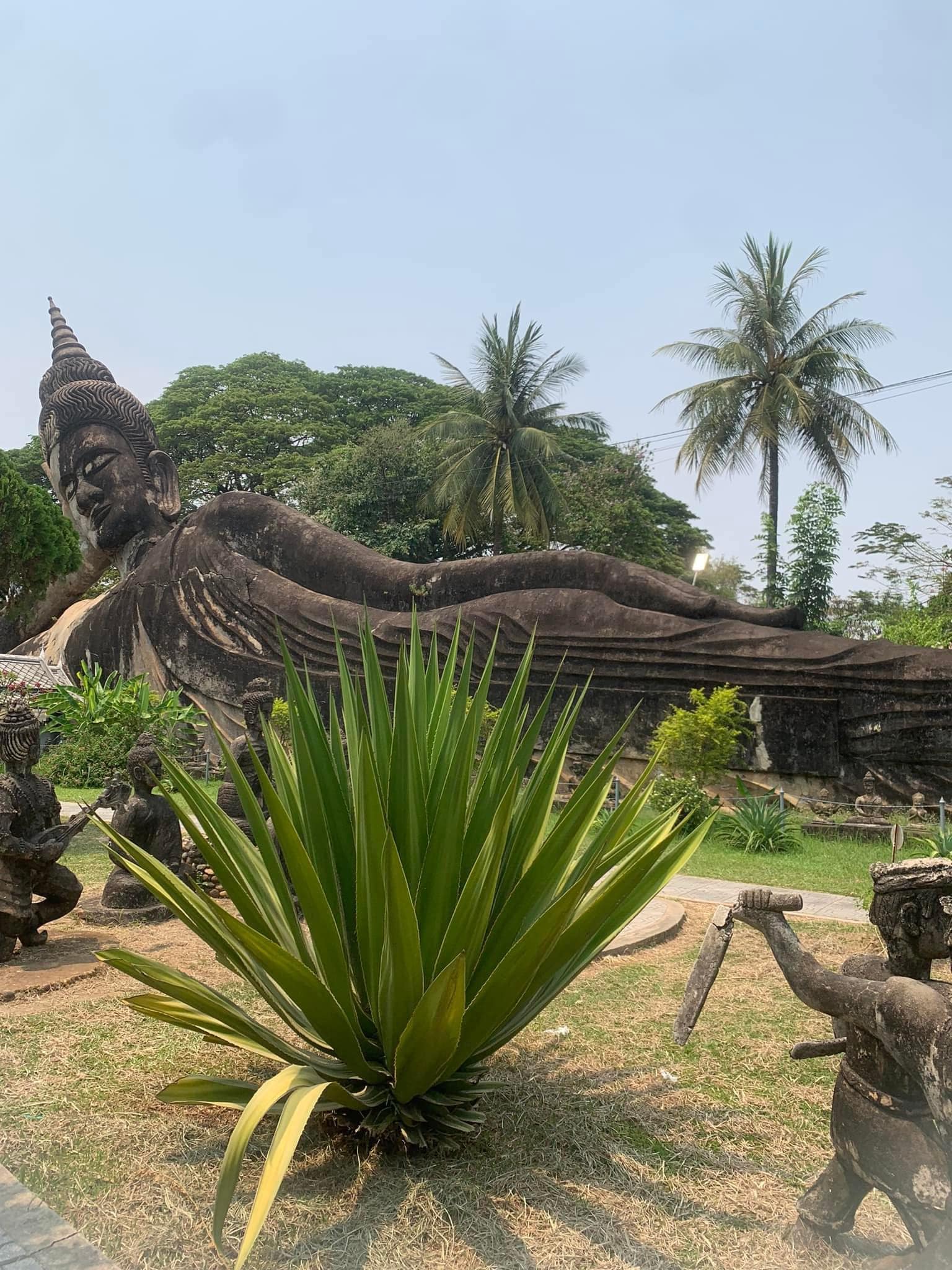 - Vườn Tượng Phật Xiêng Khuôn (Wat Xiengkuane): Vườn tượng Phật được khởi công xây dựng từ năm 1962. Nơi đây có gần 300 bức tượng về thần, động vật, quỷ,... mỗi bức tượng đều thể hiện sự hòa trộn hài hòa giữa Hindu giáo và Phật giáo. Đến Vườn Tượng Phật vào giữa trưa và về vào đầu chiều, cái nắng của Vientiane đã "đốt" đen 2 mu bàn tay khi lái xe máy của mình nhưng đổi lại, chẳng hiểu sao khi dạo loanh quanh ngắm nhìn những bức tượng Phật hình dáng độc đáo, nhất là Bức tượng Phật nằm khổng lồ dài 40m, lòng mình lại an yên đến lạ.