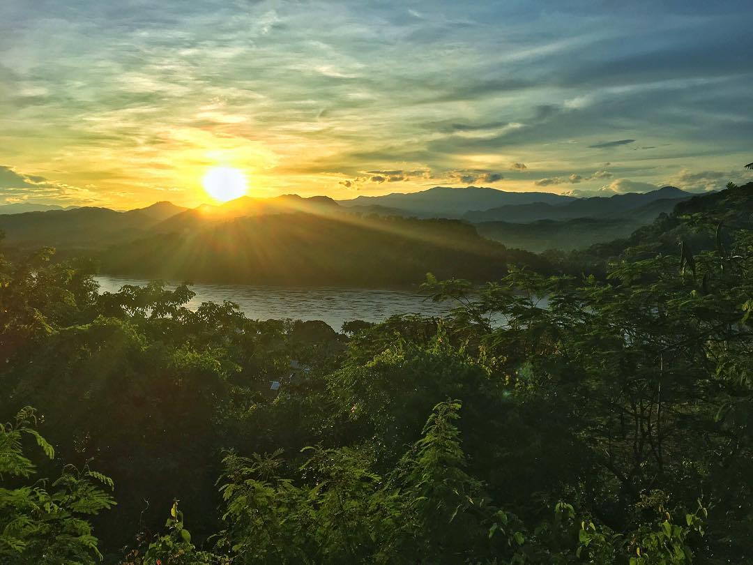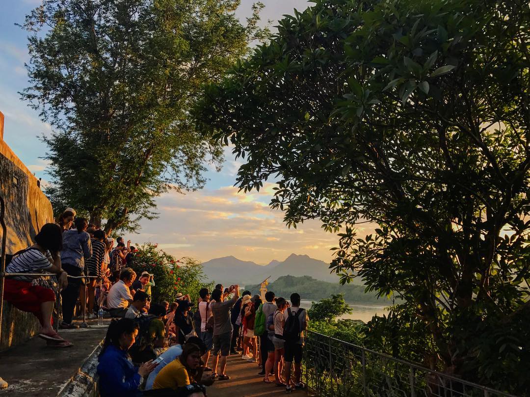 - Núi Phou Si: Gọi là núi thôi chứ thực tế nó là quả đồi =))) Tuy chỉ cao 100m nhưng đứng từ trên cao đã có thể bao quát cả LPB vào trong tầm mắt. Khi đã leo lên đến đỉnh đồi, mình mới thật sự hiểu lý do vì sao cố đô Luang Prabang lại được UNESCO công nhận là Di sản thế giới vào năm 1995. Những nếp nhà cổ kính, dòng xe qua lại tấp nập, những rặng dừa sừng sững bên dòng Mê Kong,... tất cả đã tạo nên 1 khung cảnh nên thơ. Đây cũng chính là nét đặc sắc riêng biệt, không đâu có thể bắt chước của Cố đô xinh đẹp này.
