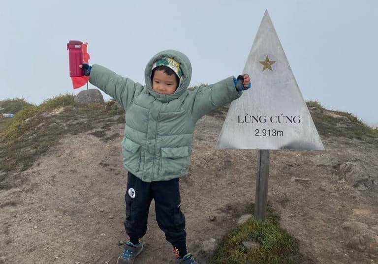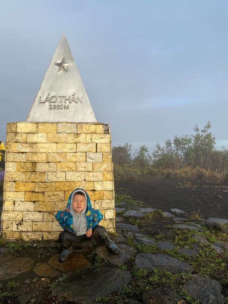 Min bắt đầu "gia tài" leo núi của mình với ngọn núi Côn Sơn cao hơn 200m ở Chí Linh, Hải Dương. Nhưng chính thức được gọi là trekking thì phải đến tháng 11/2023 - khi Min hơn 4 tuổi, hai vợ chồng chị Giang đã cùng con chinh phục ngọn núi Lảo Thẩn (cao 2.680m, ở Bát Xát, Lào Cai).
